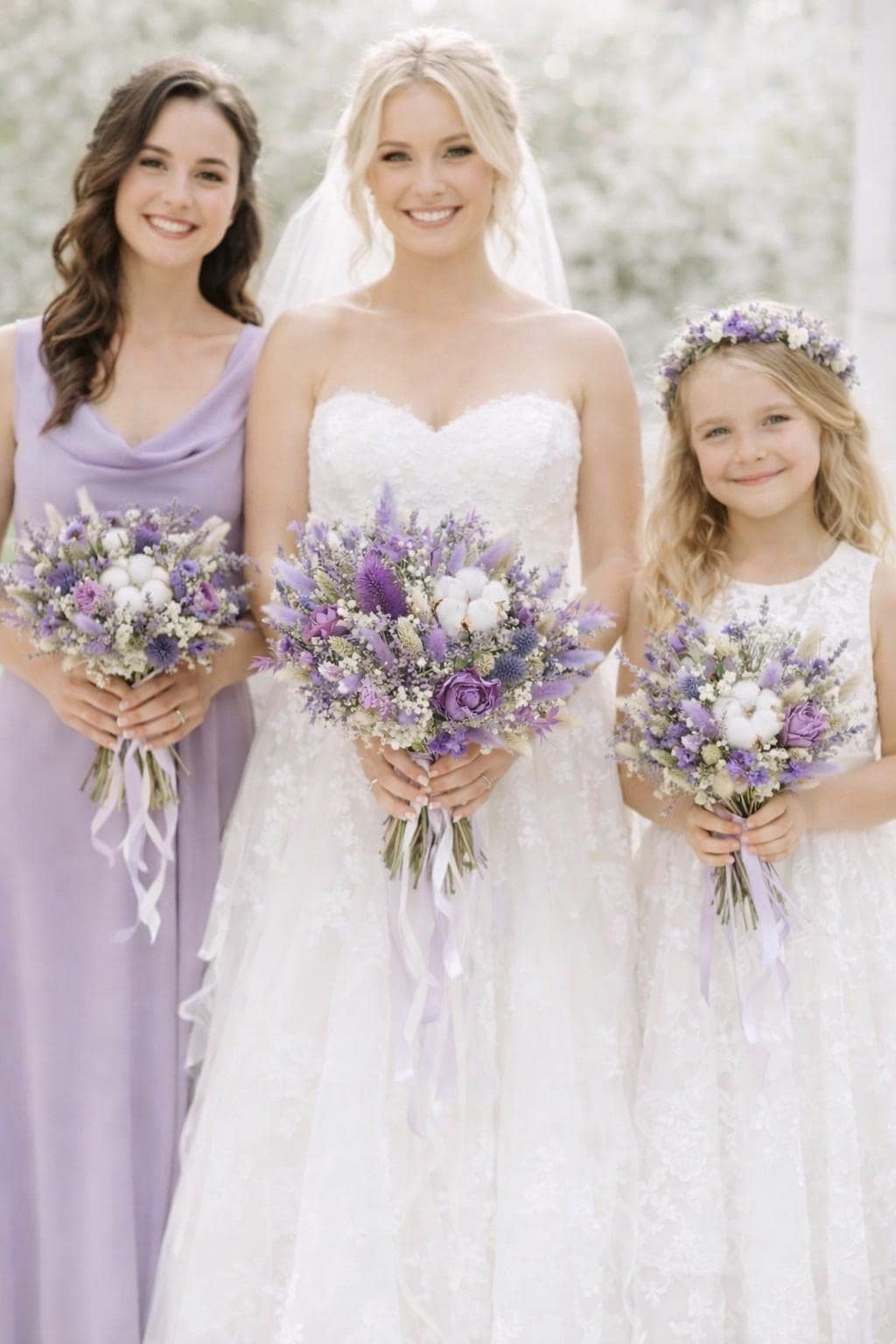 Finished with flowing pastel ribbons, this bouquet is lightweight, long-lasting, and completely maintenance-free — a beautiful alternative to fresh flowers that will remain a treasured keepsake long after your special day.