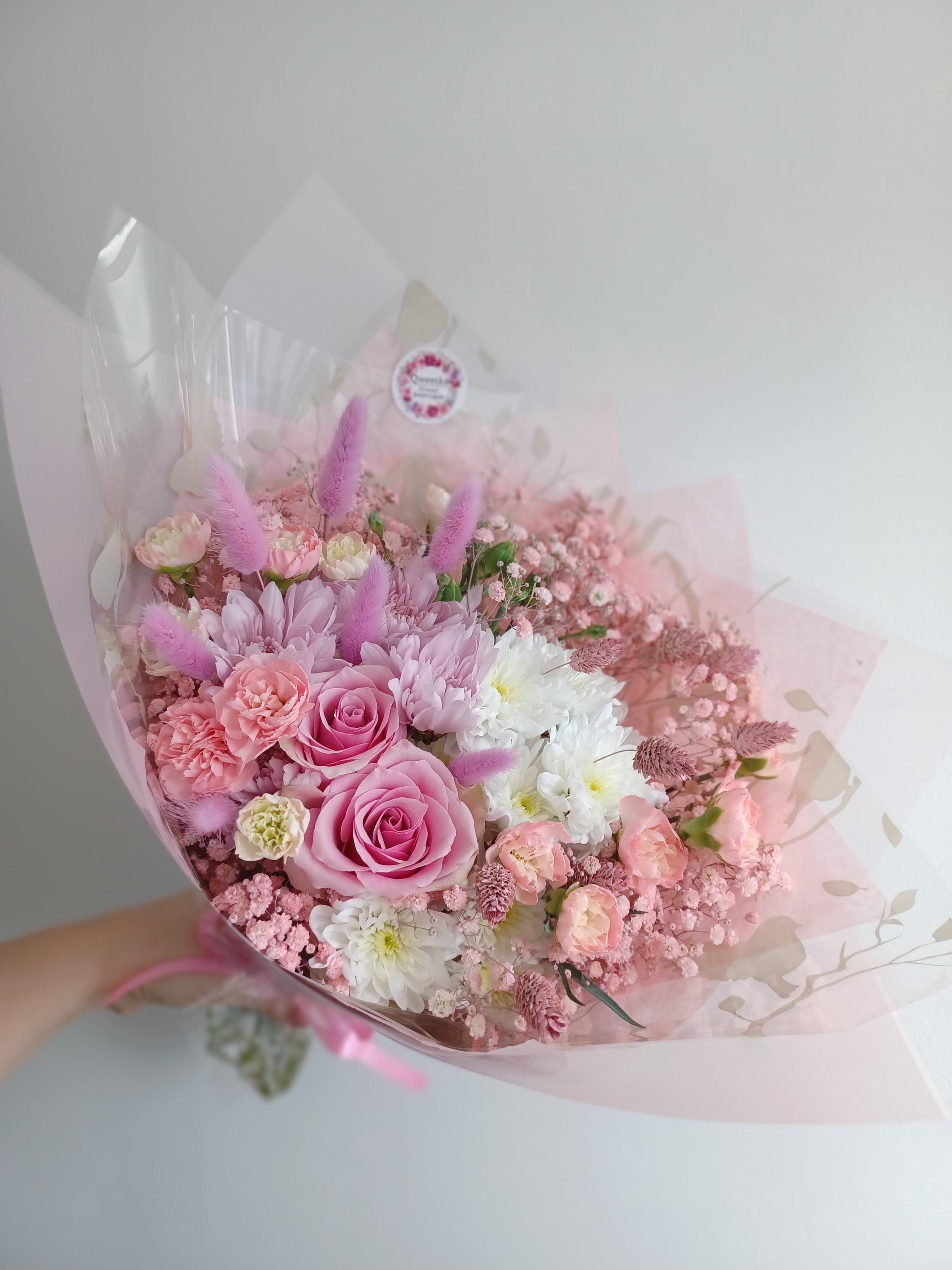 Dear Customers, we are very happy to create these beautiful Pink & White seasonal fresh flower bouquets for your special occasions!